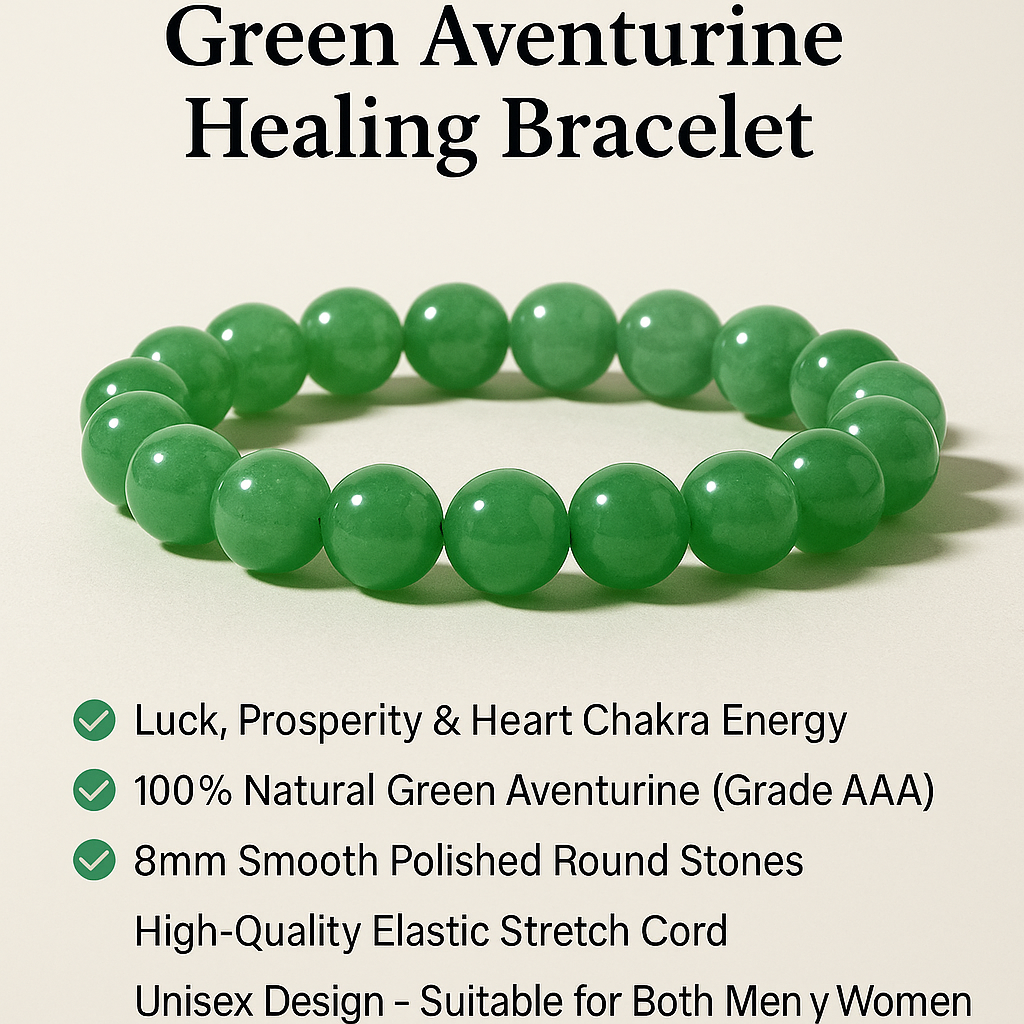 Welcome abundance and emotional balance with the Green Aventurine Bracelet – a powerful crystal for luck, new beginnings, and heart chakra healing. A must-have for those seeking growth, success, and harmony.